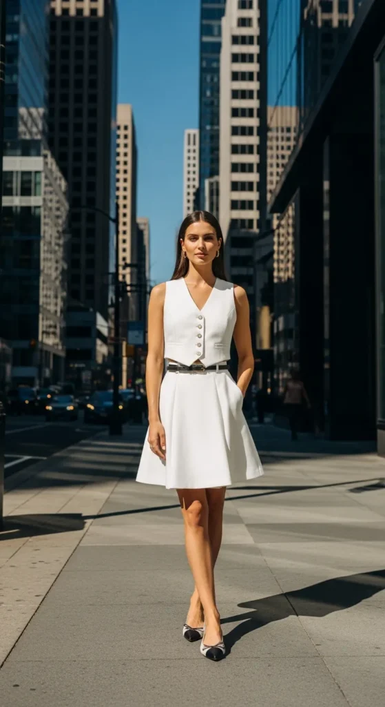 A tailored vest top with a white skirt feels fresh and fashion-forward. It creates structure while staying breathable, making it ideal for warm urban days.