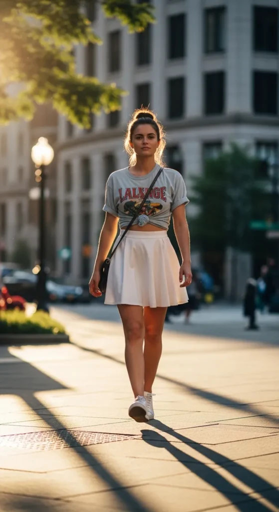 Pairing a white skirt with a relaxed graphic tee creates an easy, youthful balance. It feels playful without being loud, perfect for casual plans when you still want to look thoughtfully styled and fresh.