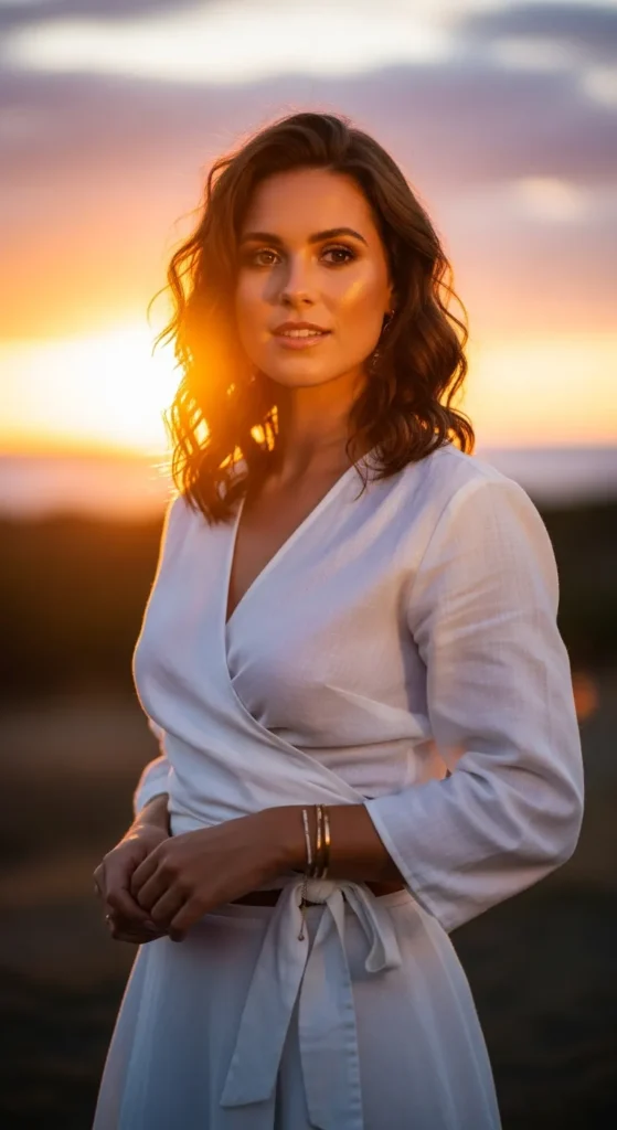 Stylist Suggestion: Highlight the waist tie and add delicate bracelets. These details emphasize the wrap design and enhance the outfit’s natural flow.