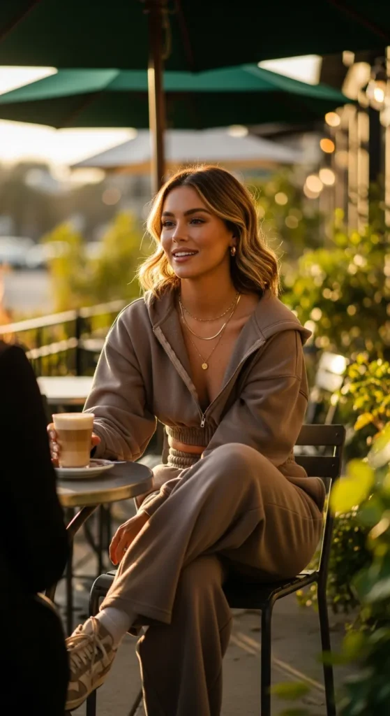Stylist Suggestion: Add delicate gold hoop earrings and cream sneakers. The warm metallic tones elevate the soft neutral palette while keeping the outfit relaxed, making it perfect for casual outings without losing that cozy aesthetic.