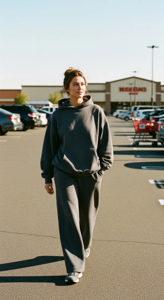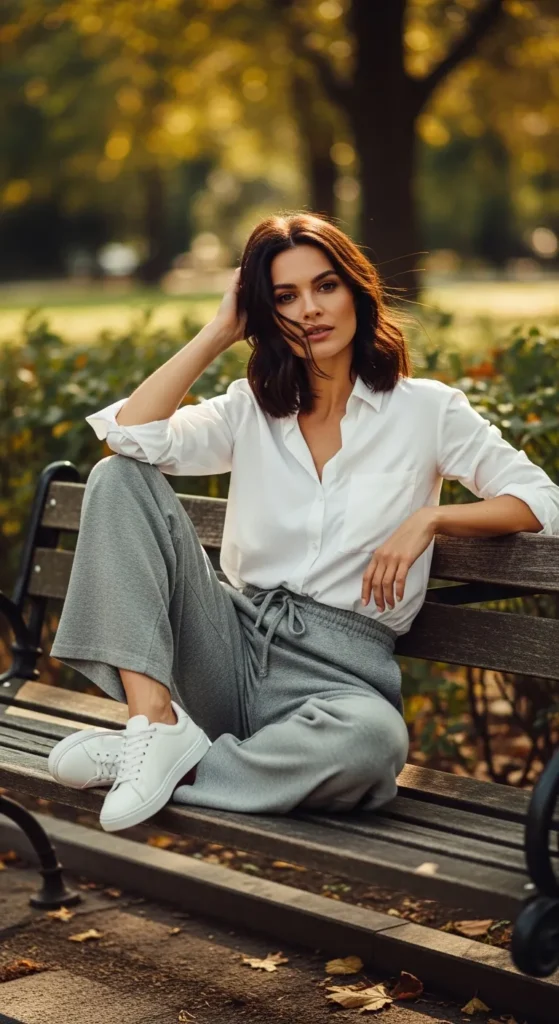 Stylist Suggestion: Add a structured leather tote bag. The contrast between relaxed sweatpants and a polished bag elevates the outfit instantly while keeping the overall look minimal.