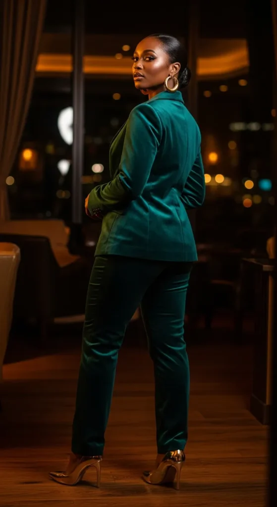 Command the room in a rich velvet power suit — think deep emerald or plum — paired with shimmering metallic heels. Effortlessly bold yet timeless, this combo gives birthday energy with luxe comfort.