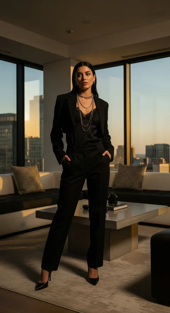Stylist Suggestion – Pair with pointed heels and layered chain necklaces. It strengthens the power silhouette while keeping your look modern and feminine.