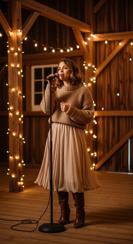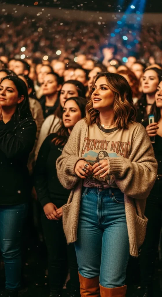 There’s something magical about winter country concerts: the crisp air, glowing string lights, boots tapping on wooden floors, and that electric feeling when your favorite song starts playing. Dressing for it is about warmth, confidence, and a little western charm without looking costume-y. These outfit ideas are cozy, wearable, and perfect for women who want to feel stylish, comfortable, and authentically country-chic all night long.