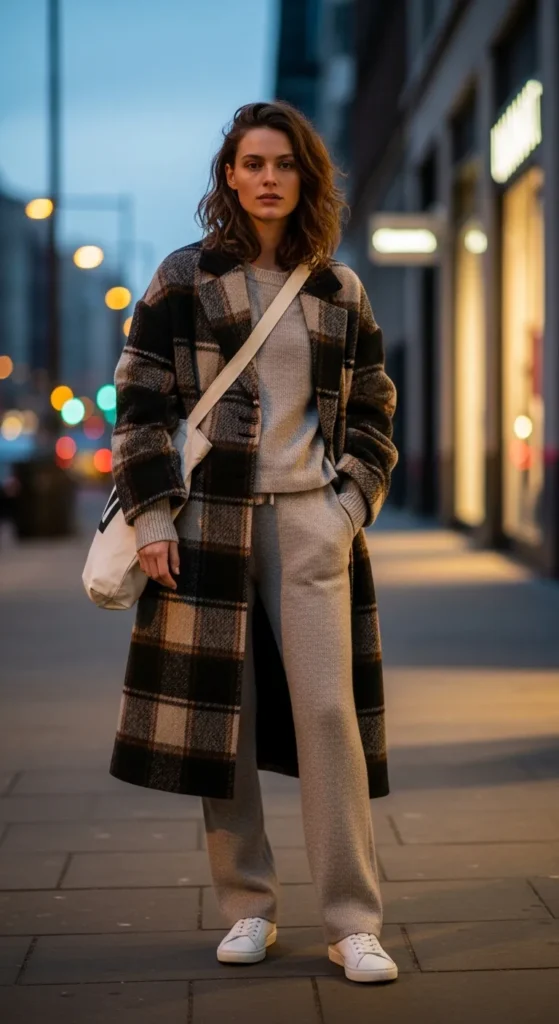 A knit set feels like comfort clothing upgraded. Adding a statement coat transforms it into a going-out outfit that looks thoughtful, relaxed, and quietly luxurious without trying too hard.