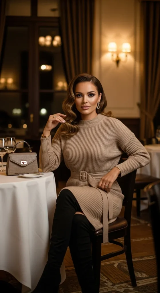 A sweater dress feels cozy and feminine, especially when belted. It creates shape while keeping warmth, making it a go-to for winter nights that call for easy elegance.