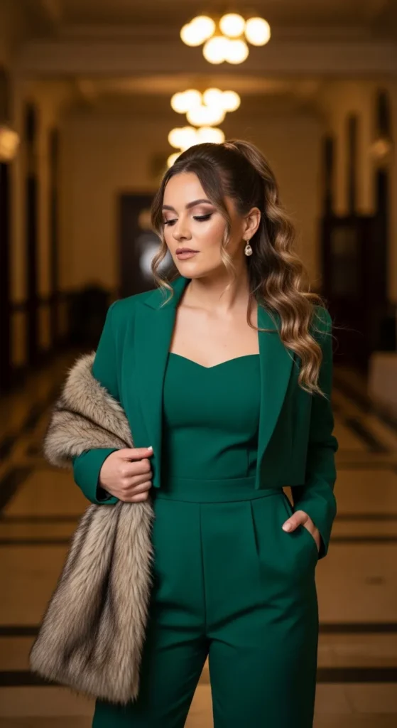 A tailored jumpsuit in emerald or burgundy feels bold and streamlined. It’s practical for winter yet makes a statement that’s effortlessly photo-ready.