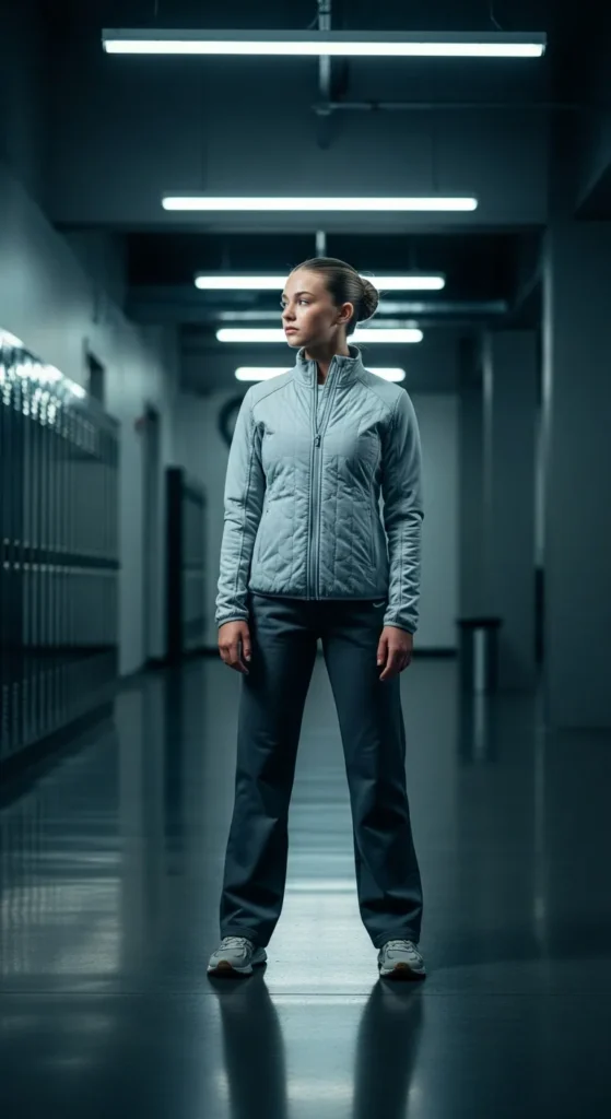 Stylist Suggestion: Layer a slim pendant necklace—it adds a subtle feminine touch against the athletic base layer.