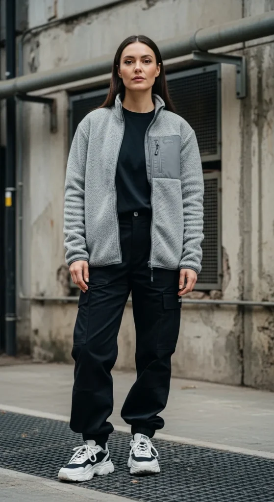 Stylist Suggestion: Add subtle silver jewelry—its cool-toned sheen complements the soft fleece and gives the outfit dimension.
