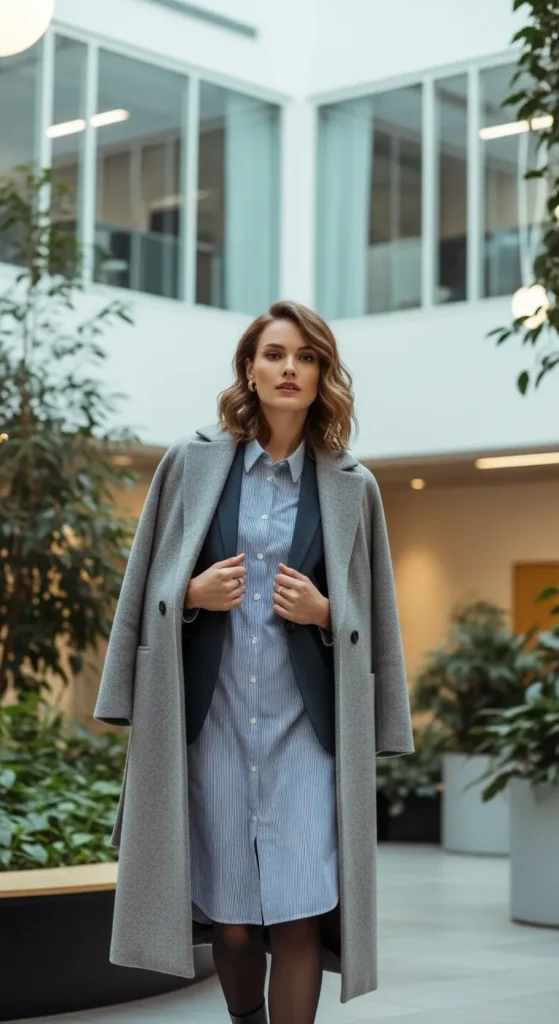 A classic office shirt paired with a cozy outer layer balances professionalism and warmth. It’s familiar, comforting, and perfect for daily winter work routines.