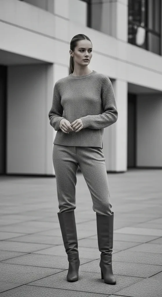 Simple wool layers paired with knee-high boots feel timeless and practical. This is the kind of outfit that works anywhere, anytime, without feeling boring.