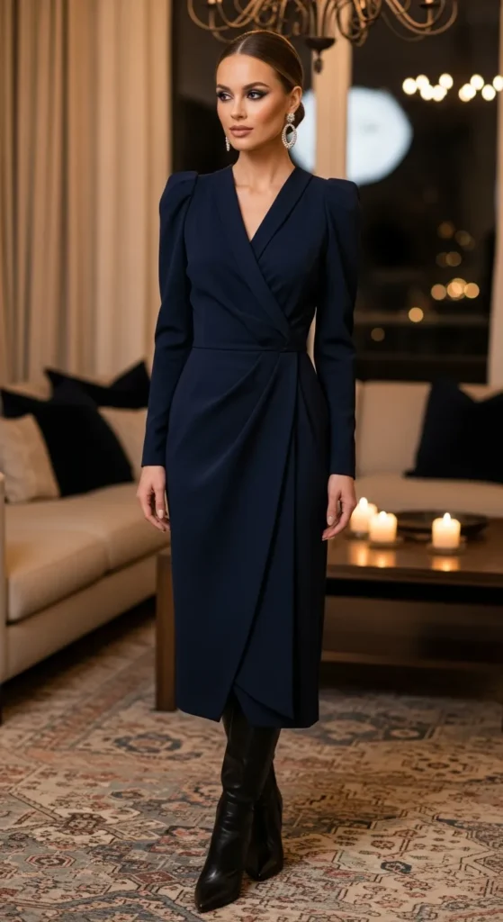 1. Midnight Wrap Dress With Sculpted Sleeves