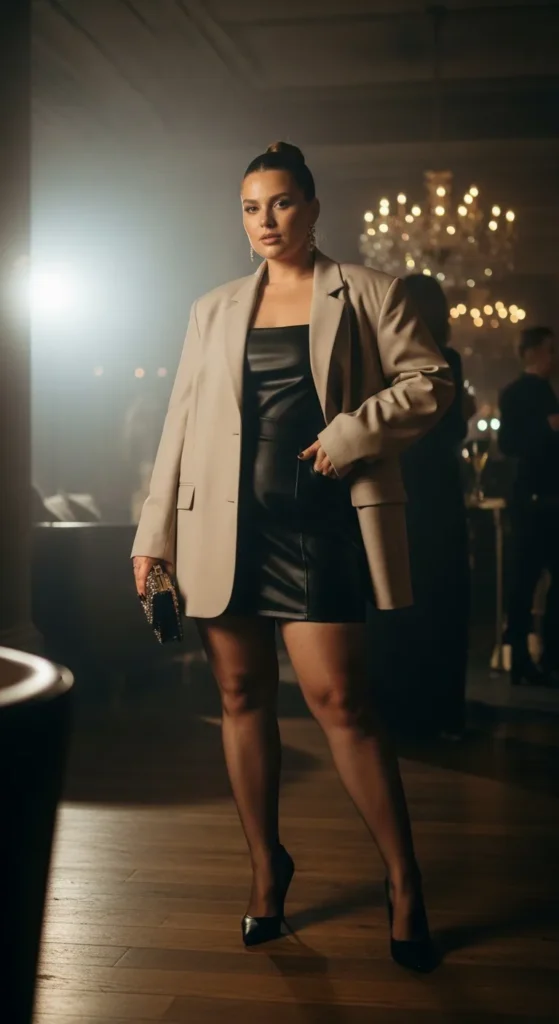 A fitted faux leather skirt paired with an oversized blazer gives instant structure and style. Perfect for that boss energy at a holiday party.