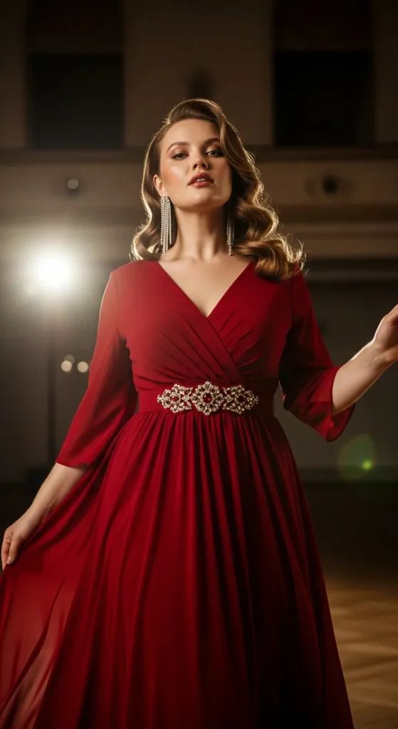 Soft, rich, and undeniably chic — a velvet wrap dress drapes perfectly over curves while keeping things glam for colder nights. The texture alone screams “holiday elegance” without even trying.