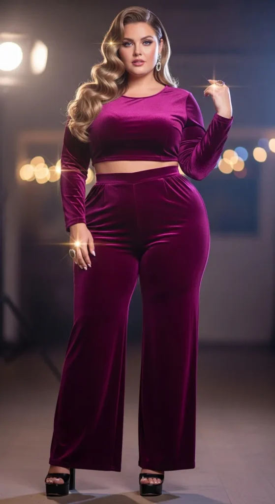 A matching velvet co-ord instantly feels rich and cohesive. It’s cozy, glamorous, and perfect for those who love drama without effort.