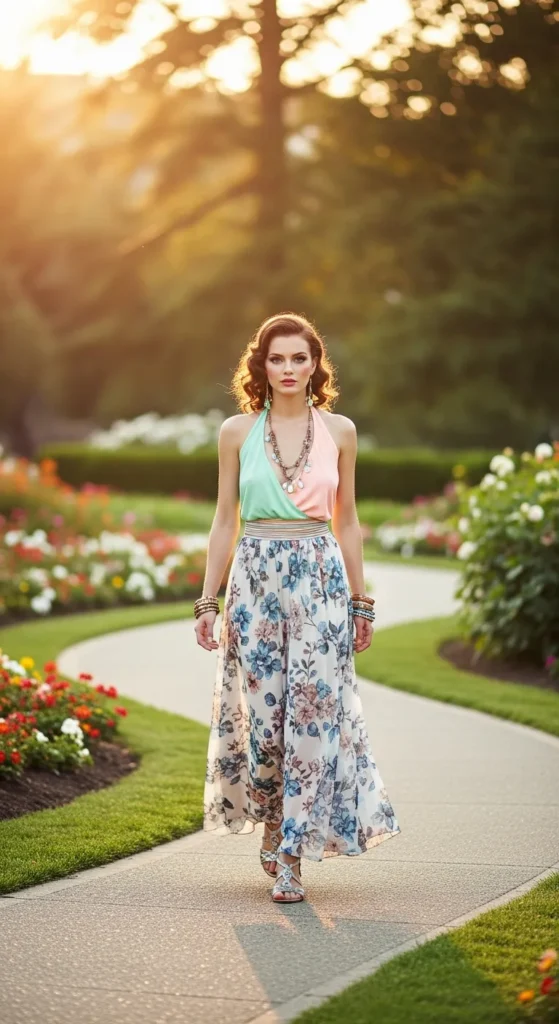 A halter top paired with a lightweight flowy maxi skirt feels dreamy and breathable. It moves beautifully in the summer breeze and adds a soft, feminine touch to your everyday school style.