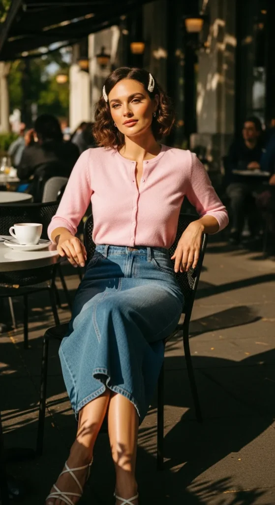 A lightweight high-waisted skirt with a matching cropped cardigan creates coordinated summer vibes. Soft knits are breathable and give a cozy-yet-trendy touch, perfect for early evenings.