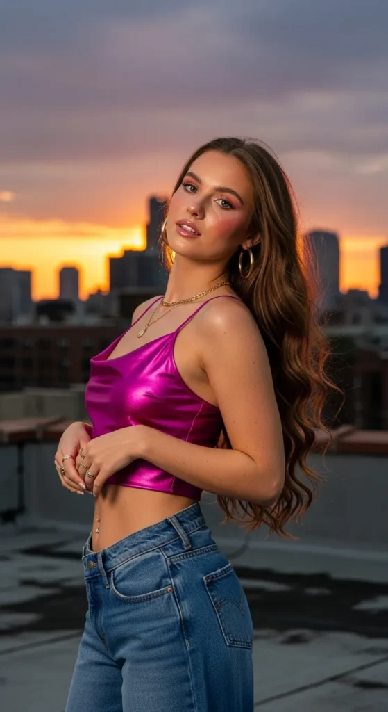 Stylist Suggestion: Add layered chain necklaces and colorful hair clips. This balances the relaxed vibe with a subtle touch of sparkle, giving your outfit personality and movement.
