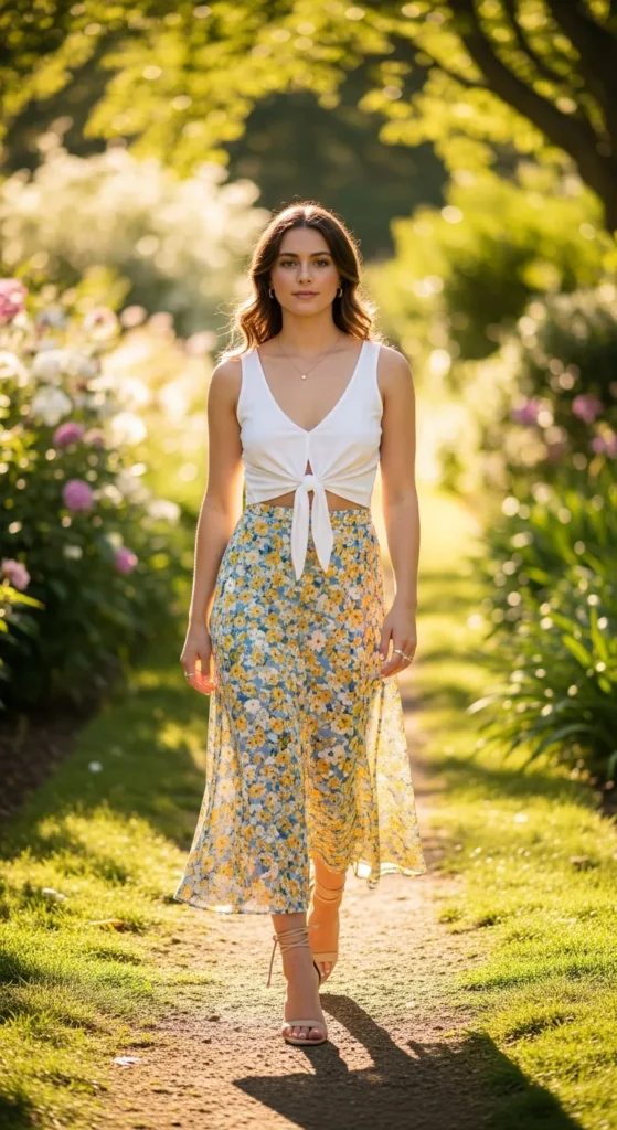 15. Tie-Front Tank with Flowing Midi Skirt