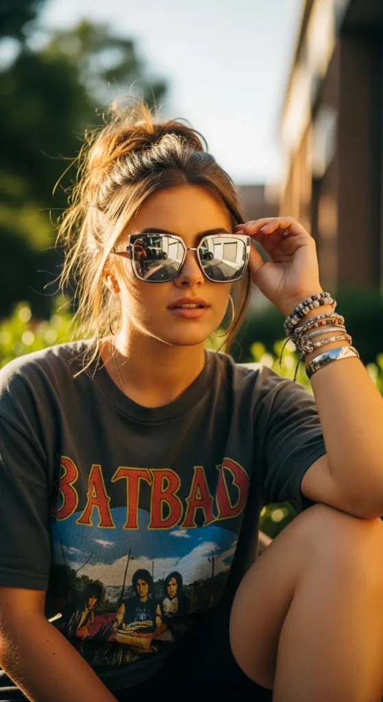 Stylist Suggestion: Add statement sunglasses and layered bracelets. These elevate the casual base and make the outfit feel styled.