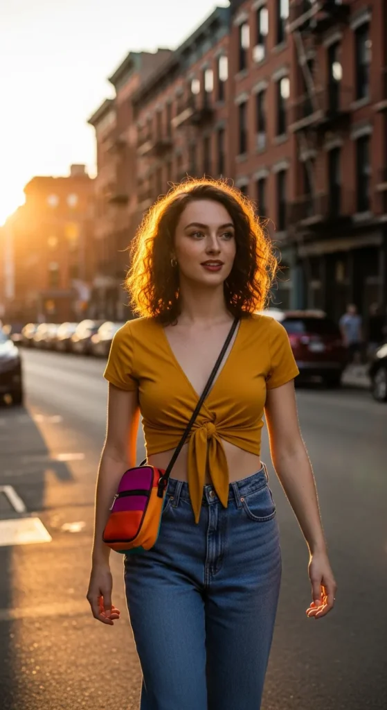 13. Tie-Front Top with Baggy Jeans