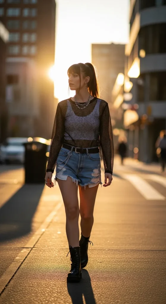 Stylist Suggestion: Combat boots and silver chain jewelry add punk-inspired Y2K energy. Sleek straight hair or a half-ponytail keeps the look balanced and modern.